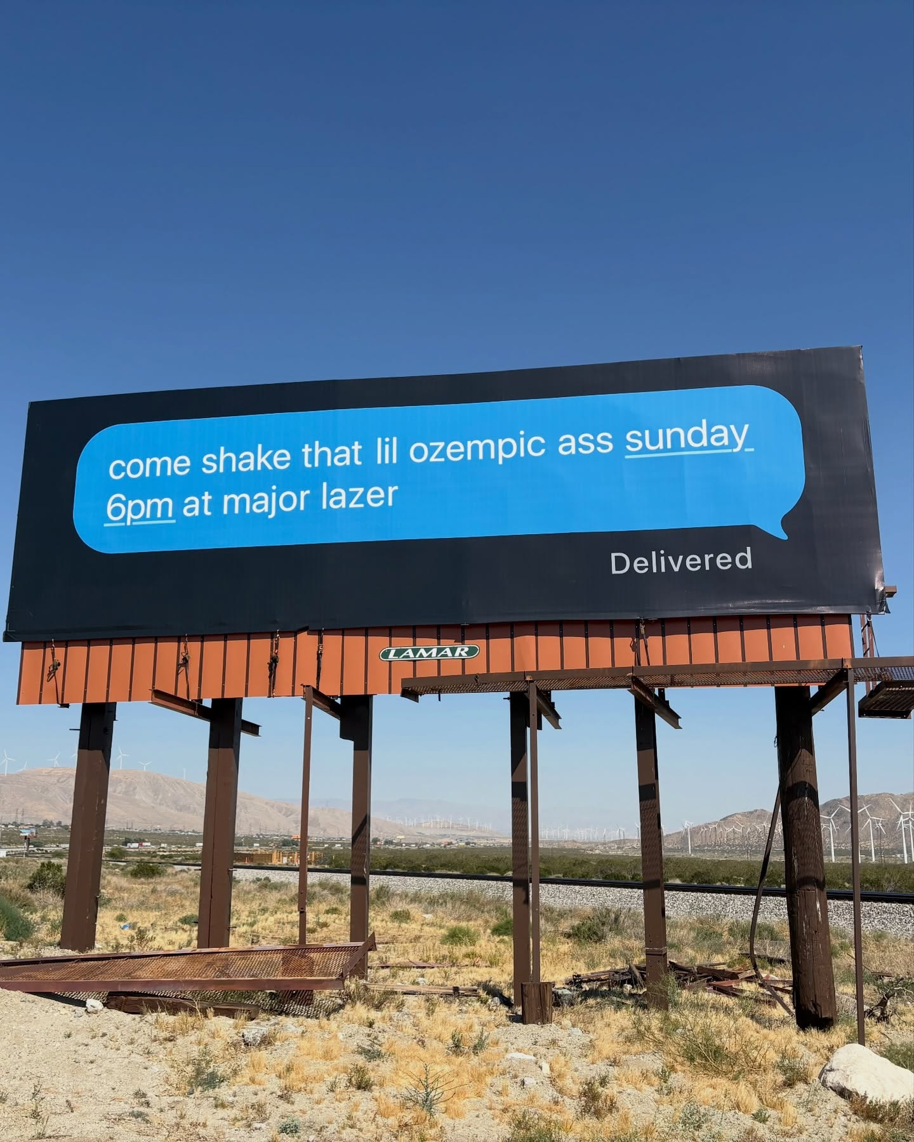 The billboards at Coachella are famously "unhinged". Creative Director Bri's sent through this one for Major Lazer—hands down, it'll be the most memorable of the year.